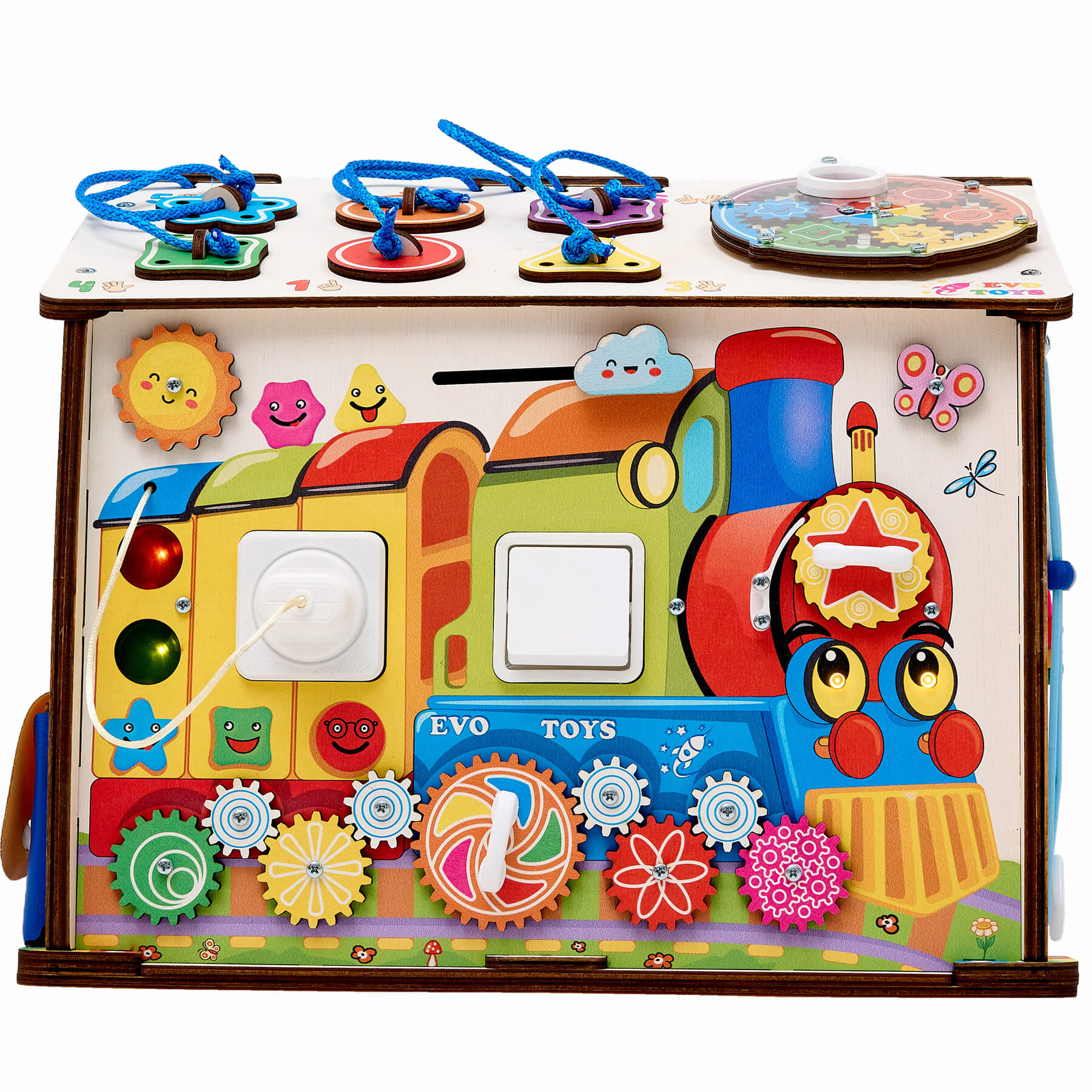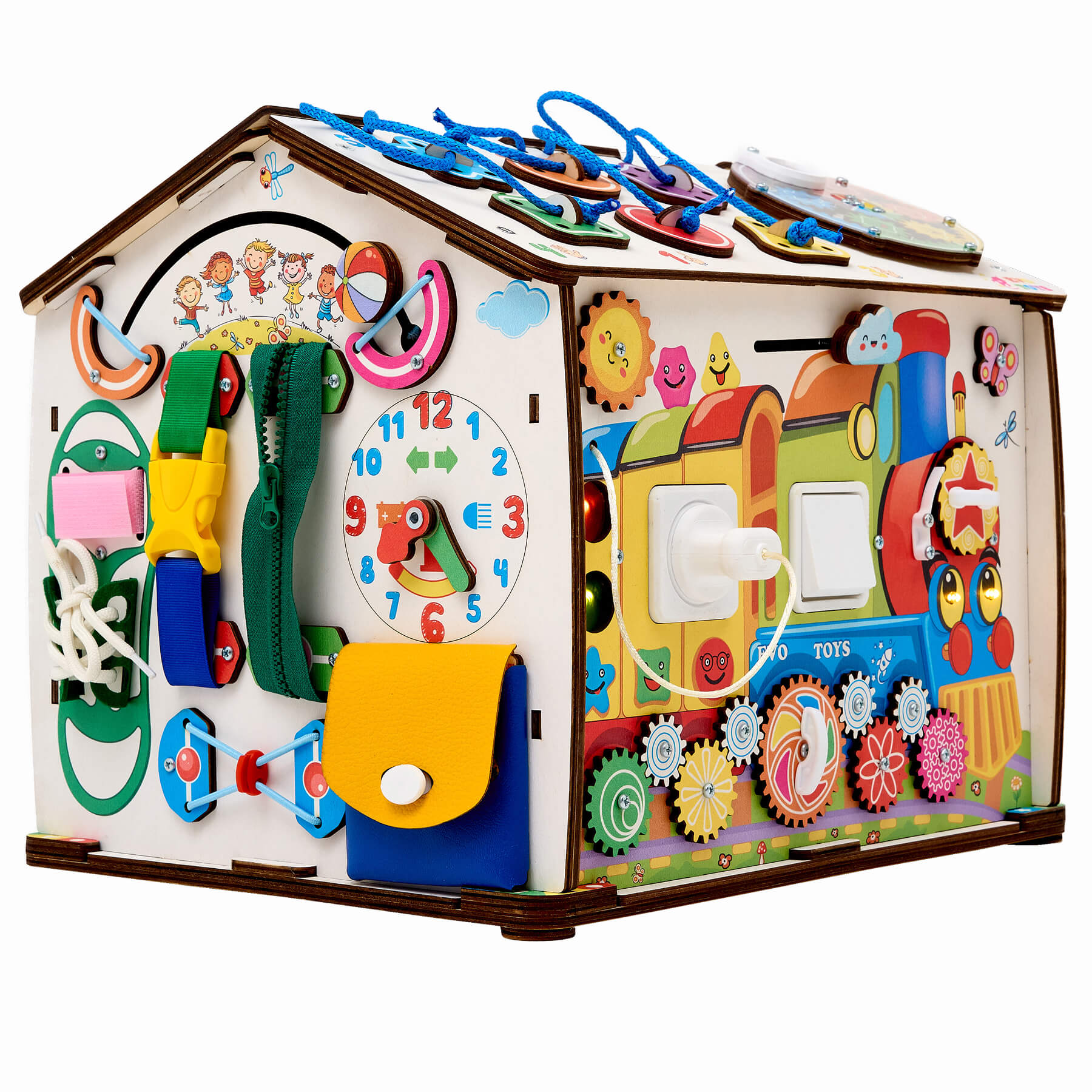 Бизиборд домик Смайлики на паровозике со светом
