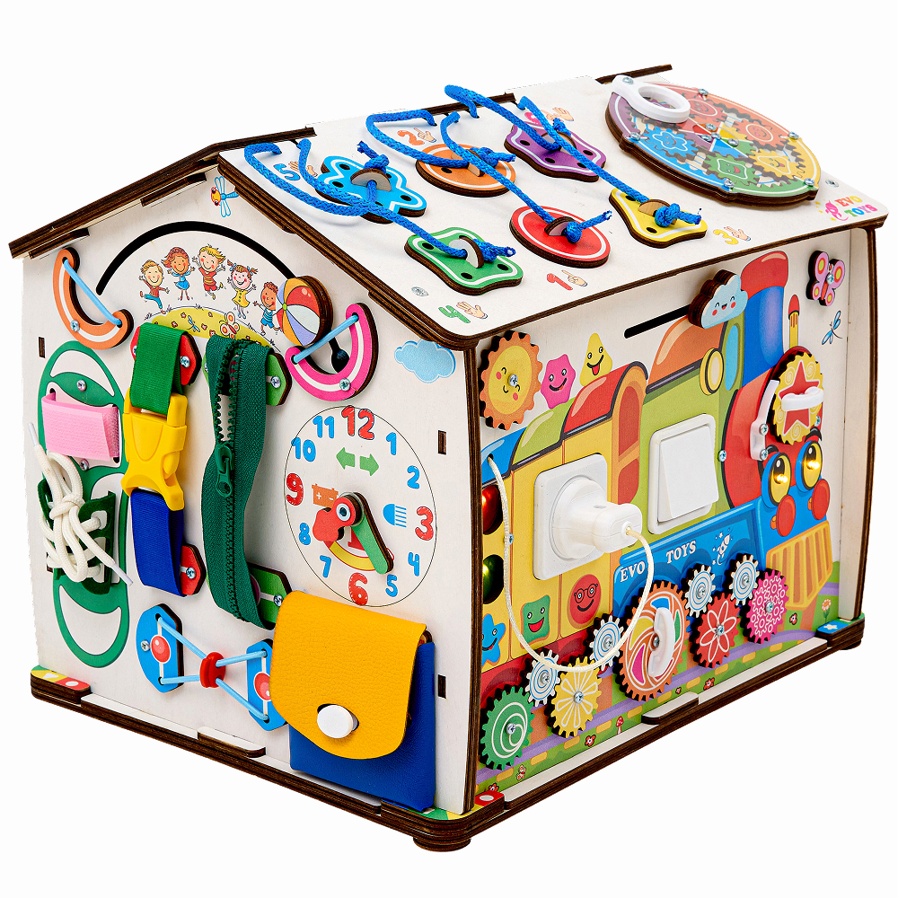 Бизиборд Домик Все в одном 30х30х45 см со светом